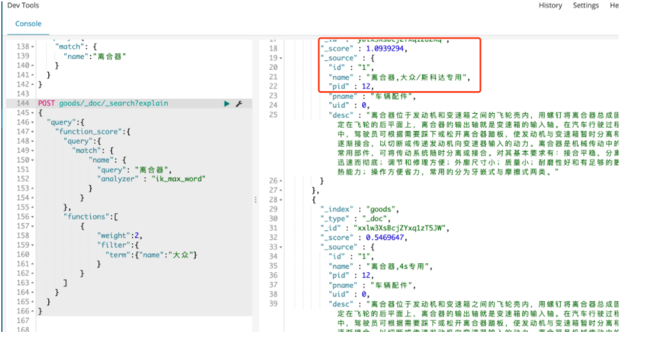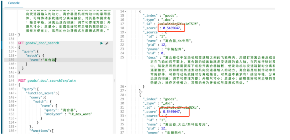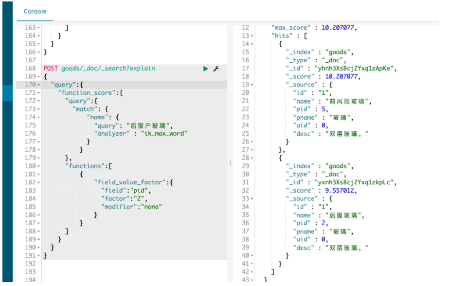 weight是最简单的function函数,它将得分乘以一个常数。之前提到的boost字段是按照对比其他字段的标准来打分。weight是会真正的乘以确定的数值。