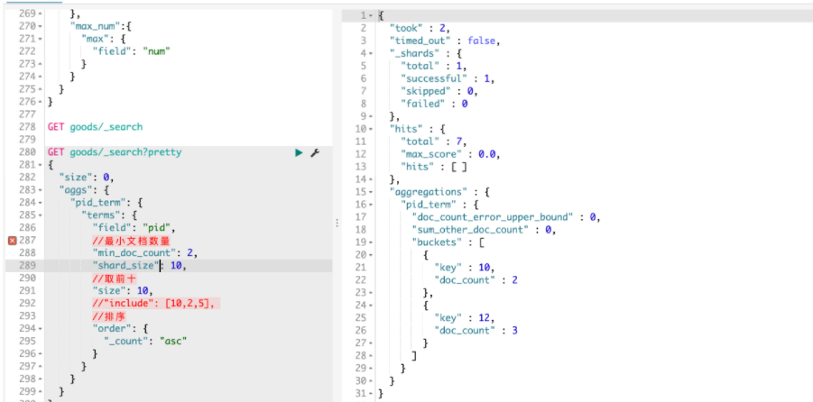 - Es为了拿到排序后前n个词条,会必须从每个分片获取一定数量的词条(可以通过参数shard_size设置)并且将结果聚集