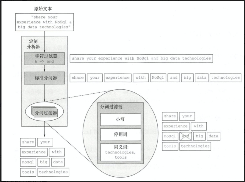 - 可以分别指定字符过滤器、分词器、分词过滤器