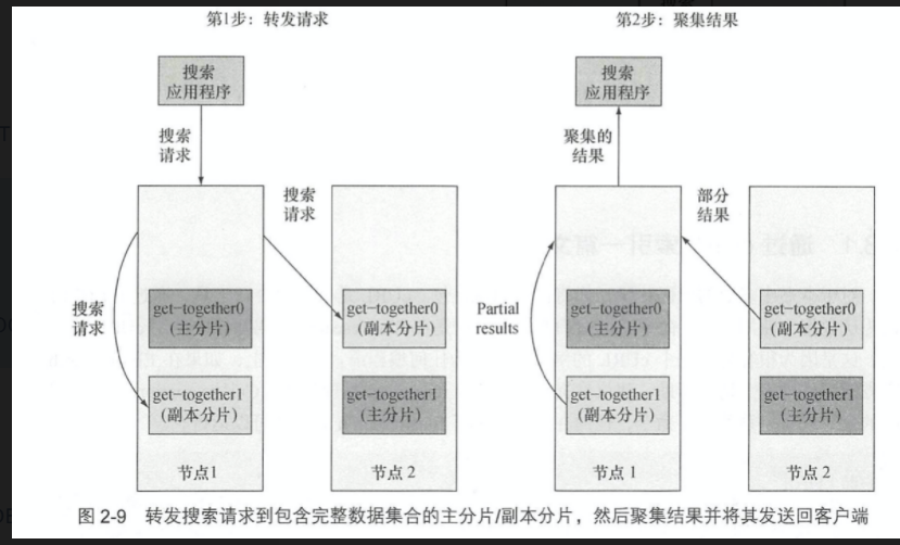搜索的时候,接受请求的节点将请求转发到一组包含所有数据的分片。Es使用轮询机制选择可用的分片,并将搜索转发过去