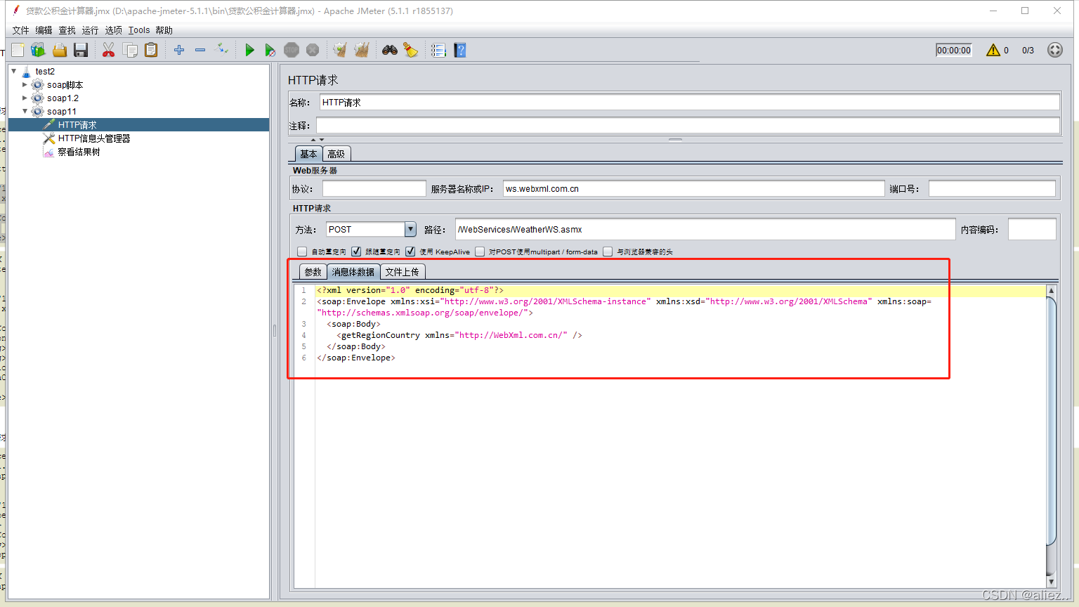 (2)取样器 ip地址 路径 消息体数据(XML传参)