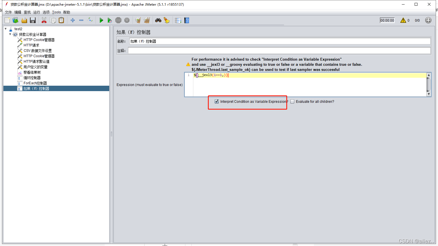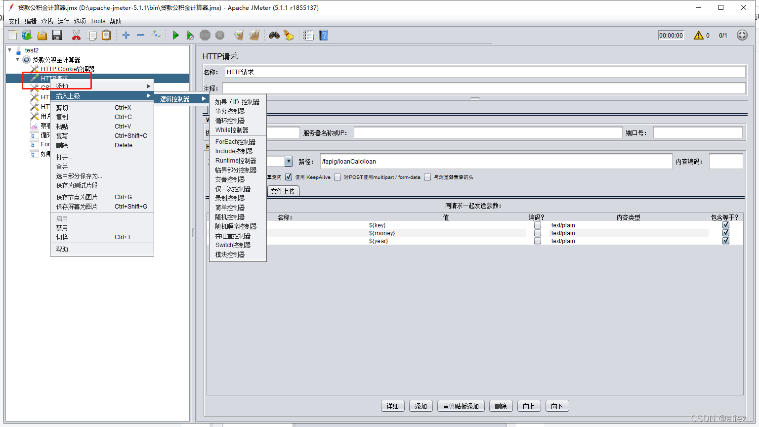 (3)正式性能测试时,是使用CLI无图形界面模式,GUI图形界面是用来编辑调试脚本
