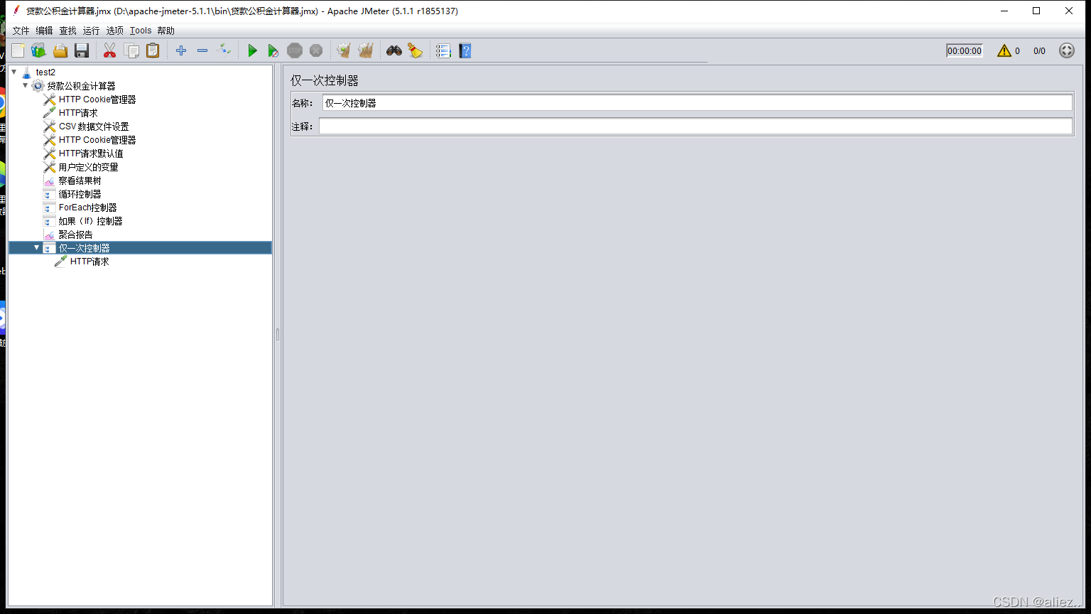 定义:一个线程组用户只运行一次,无视设置的循环次数、运行时间条件