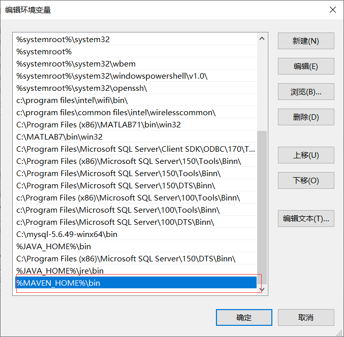 编辑系统变量 Path 添加变量值:%MAVEN_HOME%\bin