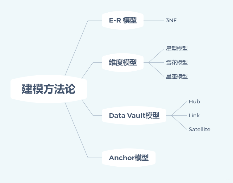 数据仓库建模方法论可分为:E-R模型、维度模型、Data Vault模型、Anchor模型。