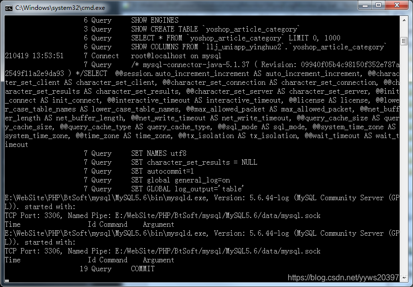 log_output=TABLE使用管理员启动CMD,进入mysql数据库,输入命令: