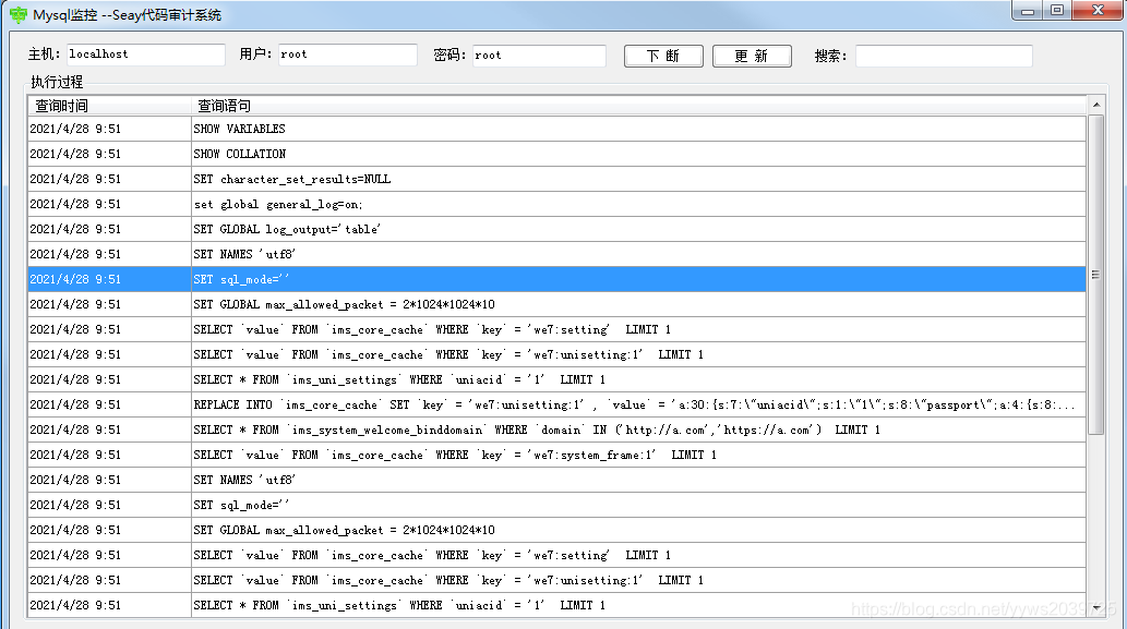 五、Mysql监控 --Seay代码审计系统
