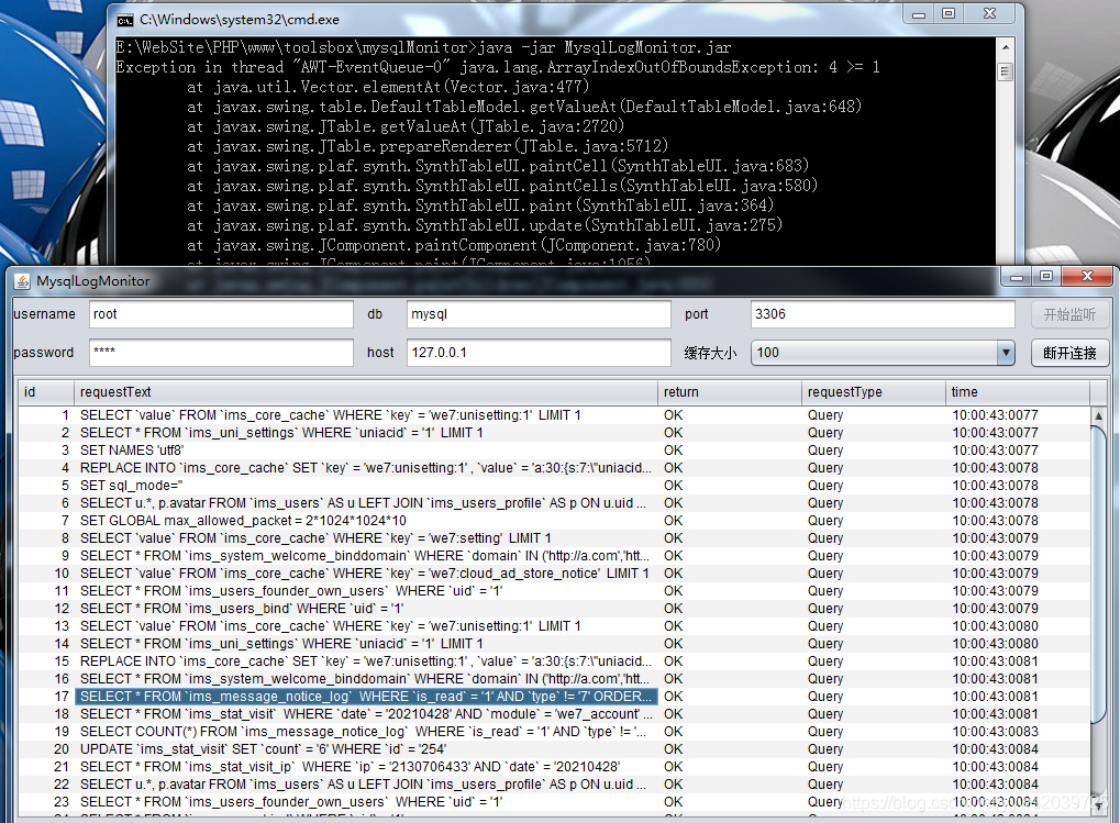 java -jar MysqlLogMonitor.jar