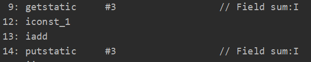 getstatic:获取静态变量值 sum,#3表示为常量池中sum的编号