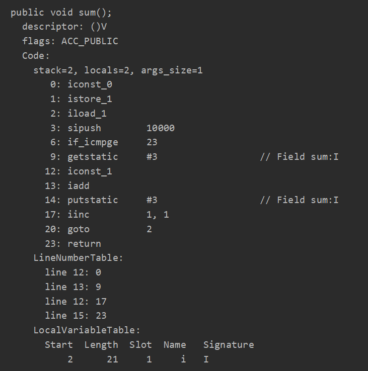 putstatic:将修改后的值存入静态变量 sum