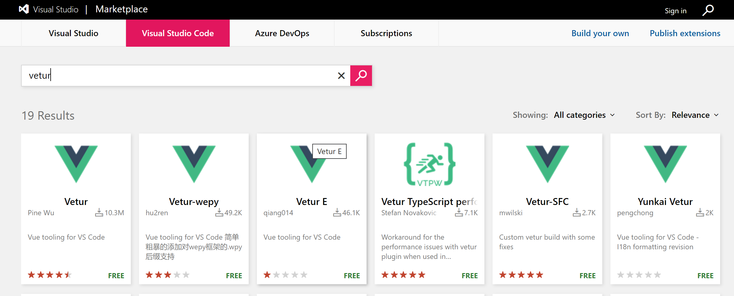 第二步: 搜索插件,例如vetur