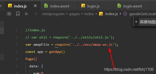 代码:var amapFile = require('../../wxs/amap-wx.js');