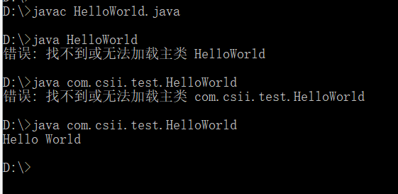 必须带上包名执行,如 java com.csii.test.HelloWorld 若依然报错,必须保证当前目录下的包目录存在且包目录下有该class文件