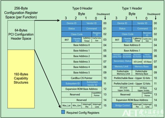 下图是从PCI总线中继承过来的配置空间: