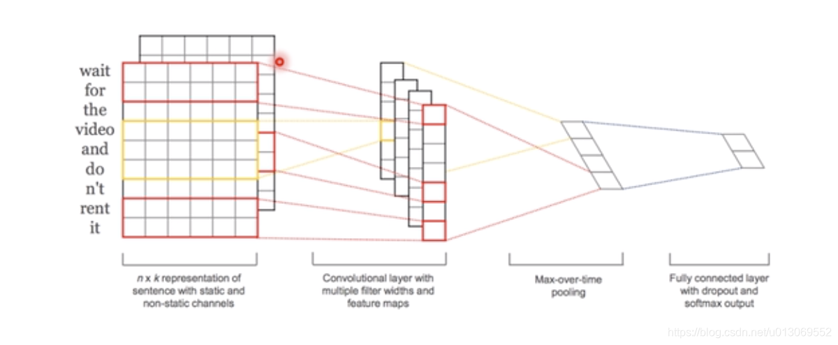 textcnn通过一维卷积来获取句子中的n-gram特征表示;预训练词向量作为embedding layer。
