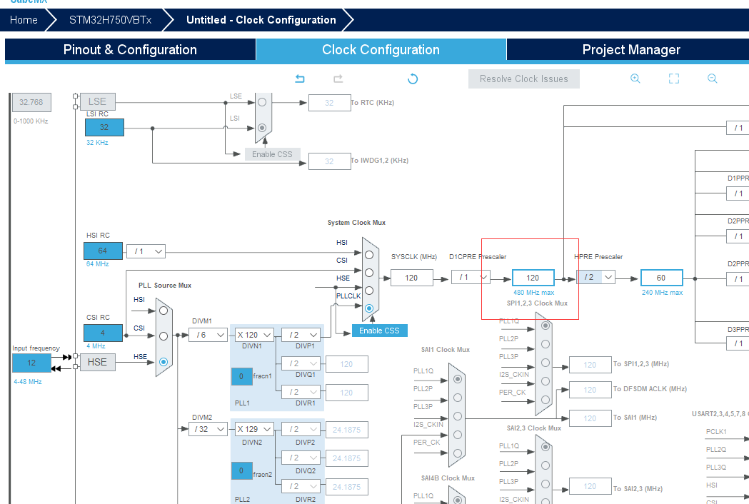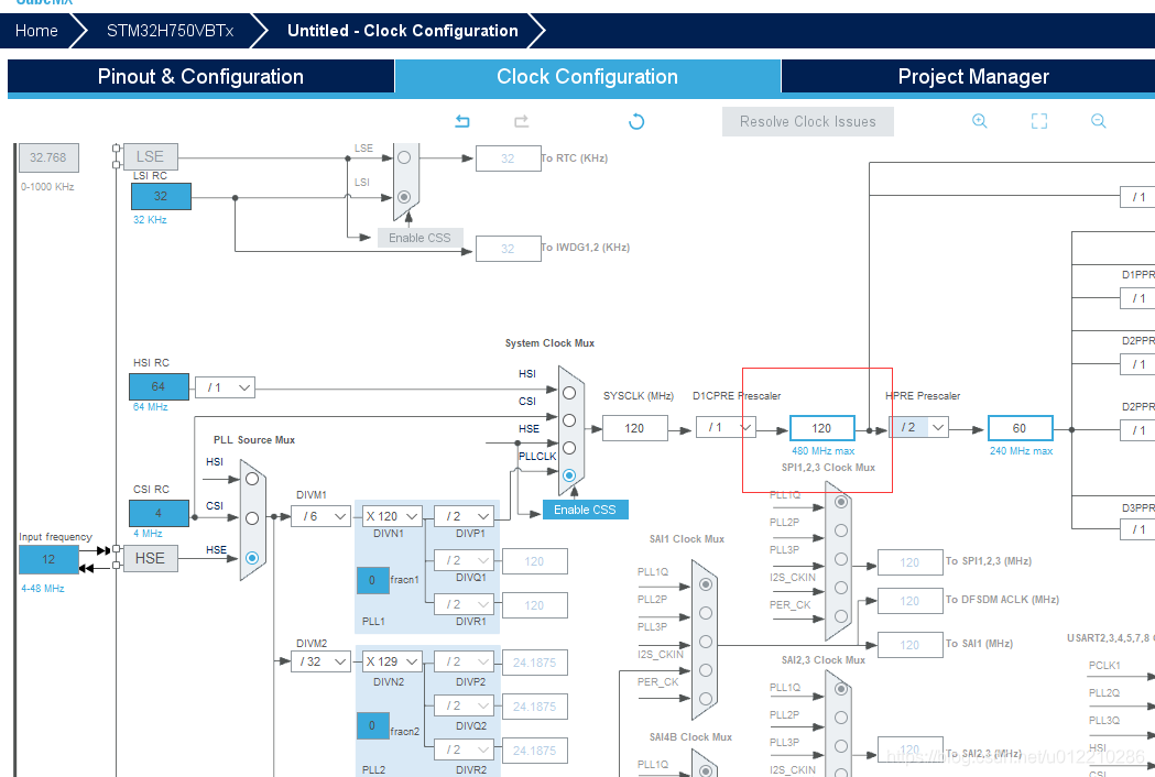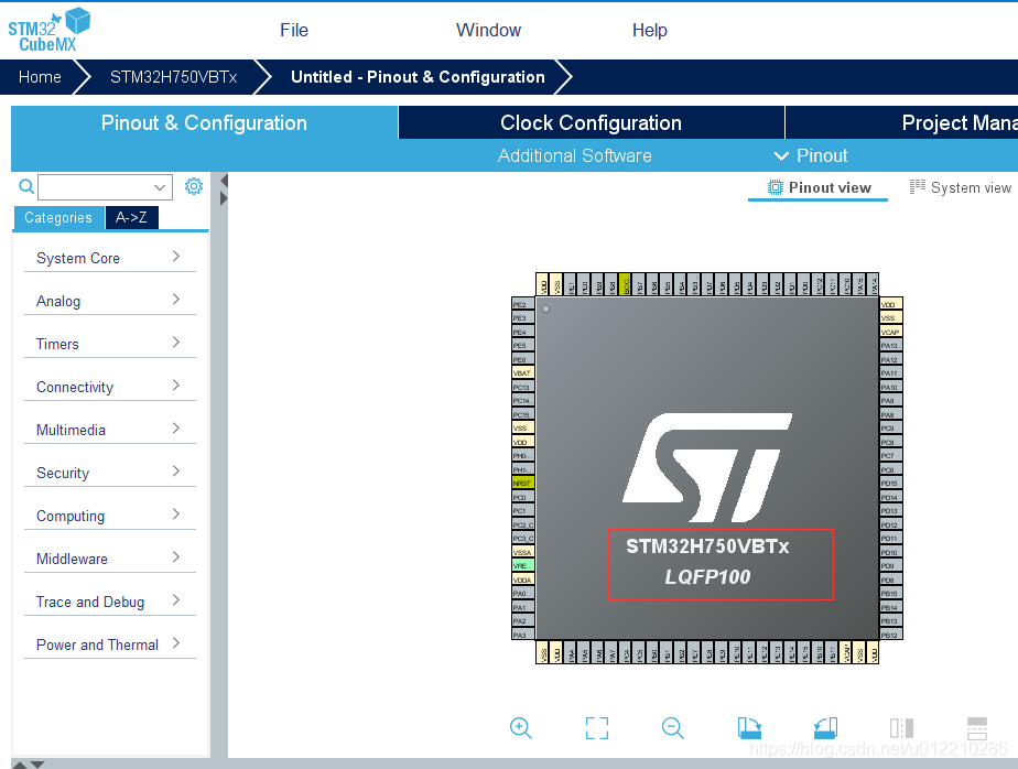 1 选择合适的mcu,这里stm32H750VB ROM:128K RAM 1M