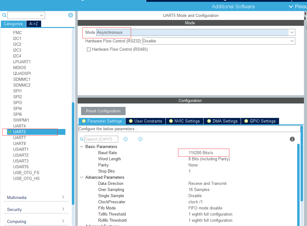 6.配置串口5 作为调试串口使用