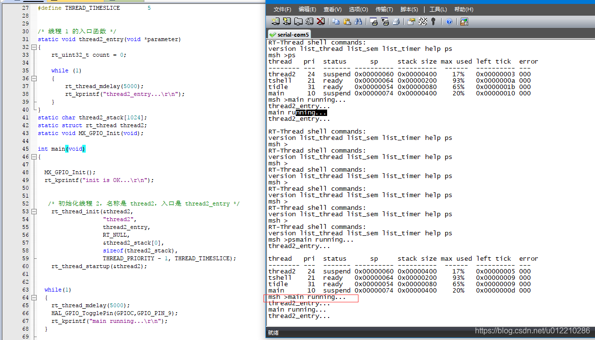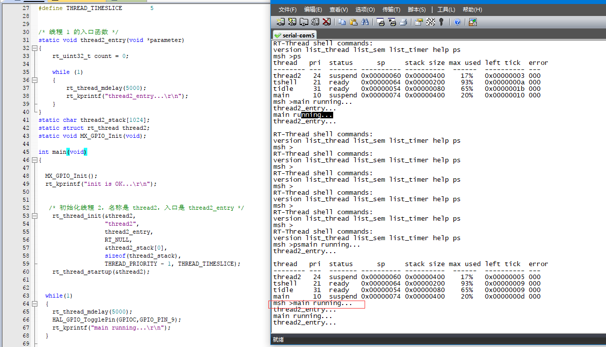 18.添加第一个线程,可以观察到 两个线程均在运行。