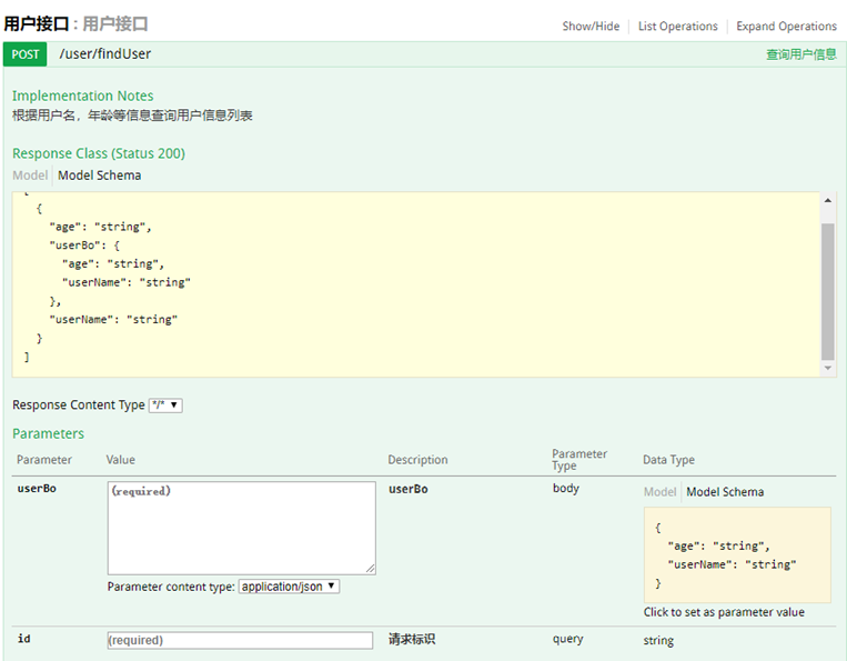 public List<UserVo> findUser(@RequestParam String id, @RequestBody UserBo userBo){