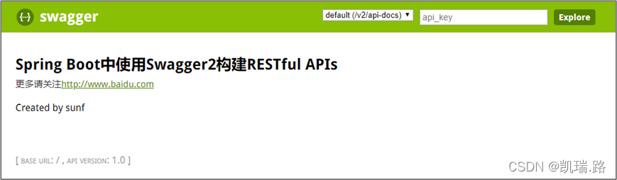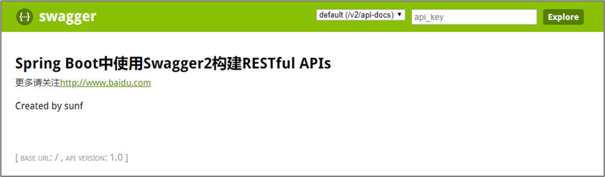 return new ApiInfoBuilder().title("Spring Boot中使用Swagger2构建RESTful APIs")