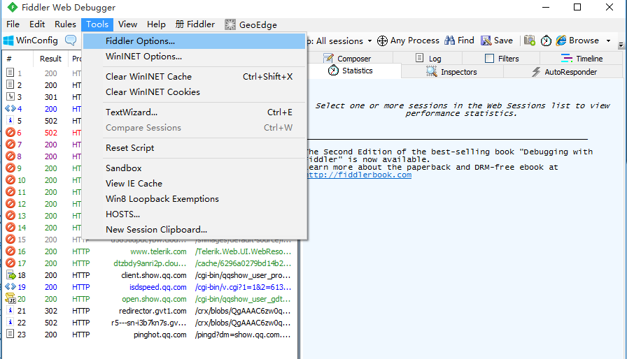2. 打开Fidder,点击菜单栏中的 [Tools] –> [Fiddler Options]