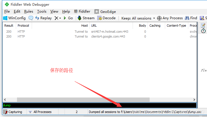dump | All | 将所有请求打包成saz压缩包,保存到“我的文档\Fiddler2\Captures”目录下 | dump |