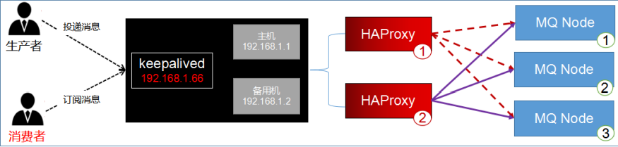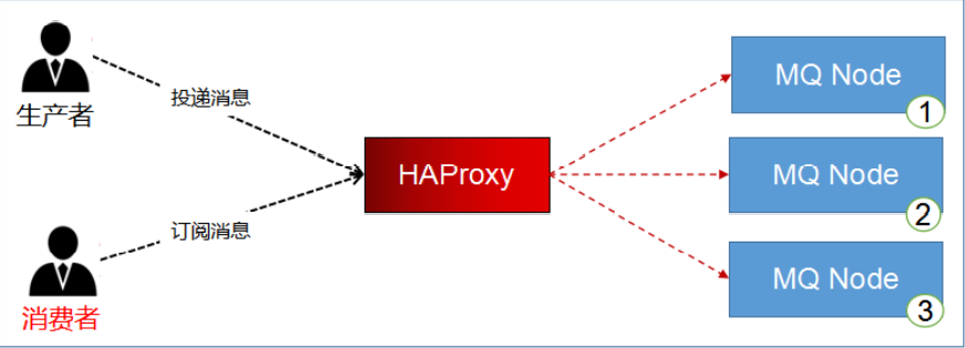 - 所有的请求都会交给HAProxy,其负载均衡给每个rabbitmq服务器