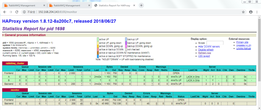 server B 192.168.204.142:5672 check inter 5000 rise 2 fall 3