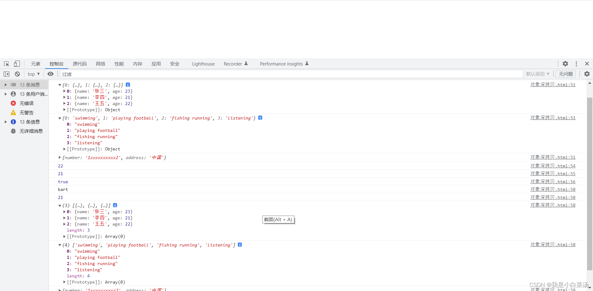 //对二者进行验证,如果实现深拷贝,则二者地址不同,改变一个的数据,另一个不会发生变化