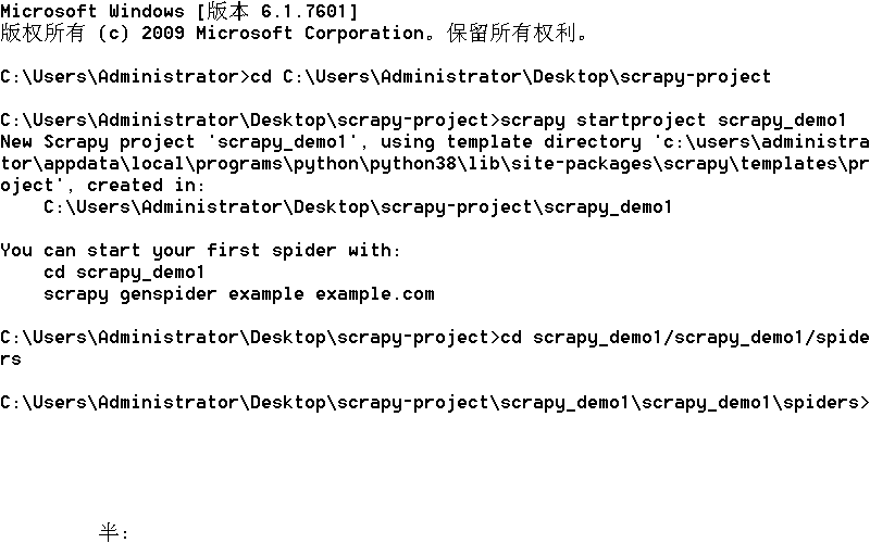 scrapy startproject 项目名称名称任意取,我们这里起名为scrapy_demo1.