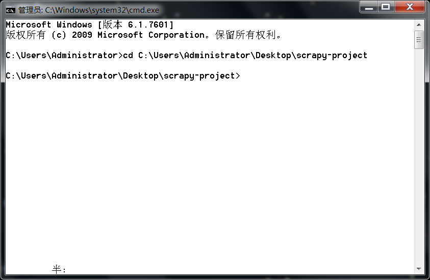 安装完成之后,我们开始用scrapy框架搭建第一个项目,要注意的是scrapy框架创建项目不同于平时用pycharm创建项目,它的操作不在pycharm中,而是在终端: