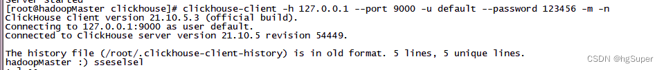 clickhouse-client -h 127.0.0.1 --port 9000 -u default --password 123456 -m -nselect version();4)顺便提一下