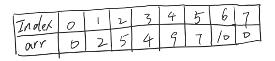 比如我们现在有一个数组arr,arr={0,2,5,4,9,7,10,0}