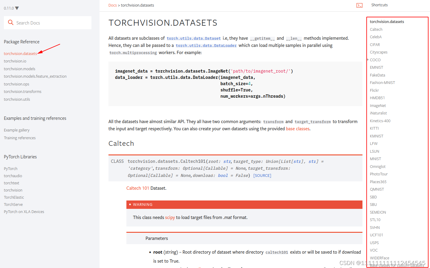 在pytorch官网可以选择下载不同的数据集,步骤如下: