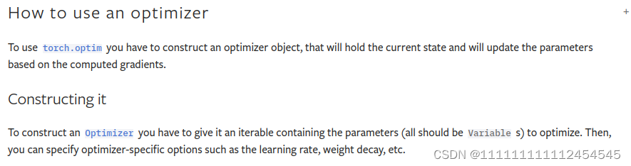 使用优化器第一步要先构建优化器,一般不同的优化器参数很不相同,所以使用到哪种优化器需要看相应的简介进行参数填充。不过绝大部分优化器都有lr(学习率这一参数);