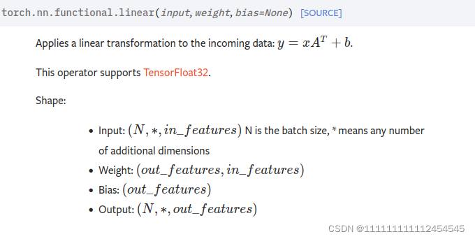 参数input一般为输入的维度,weight为权重的维度(输出)要在训练的过程中不断调整权重的数值