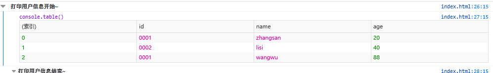 console.group('打印用户信息开始~');