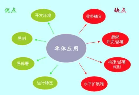 单体式应用的优点和缺点都很鲜明,如下图所示。