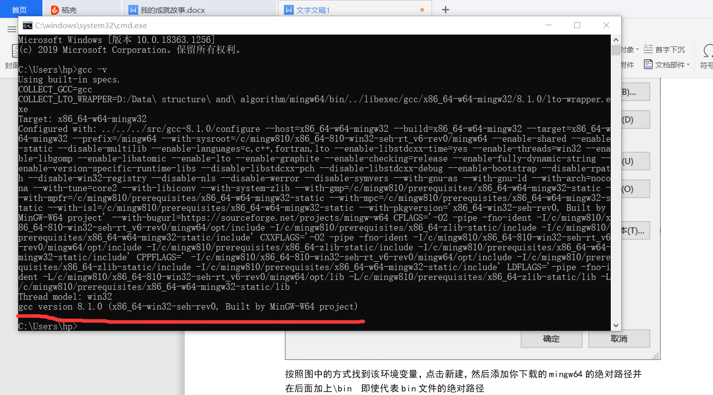 使用电脑上的windows+R键,然后输入cmd,打开命令行窗口,然后直接输入gcc -v,如果环境变量以及下载的文件没有问题,那么命令行终端将会正常运行,并能输出你所下载的gcc版本