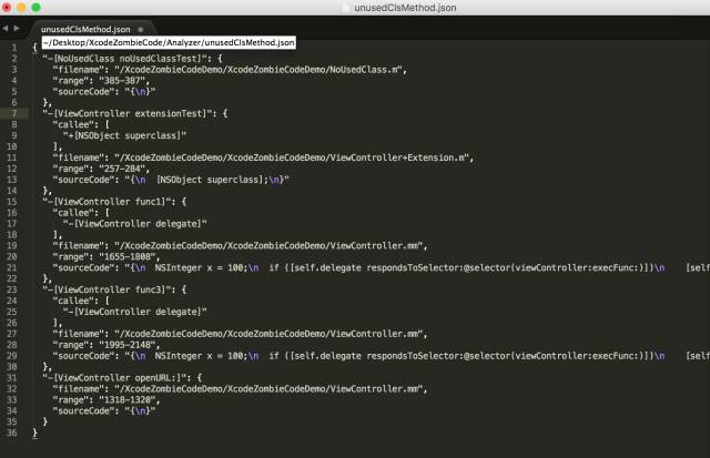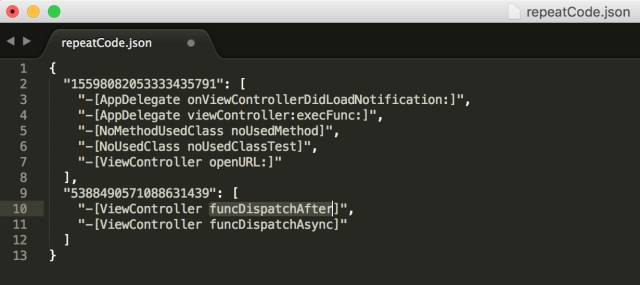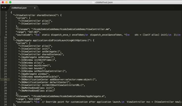 此数据结构记录了所有包含源代码的OC方法,最终解析结果如下所示: