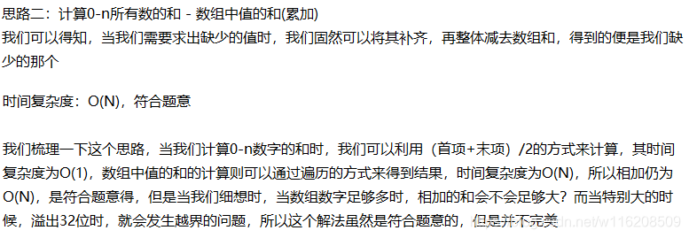 我们可以看到,这道题对于我们时间复杂度是有O(N)的要求的,所以我们在最后设计程序的时候需要遵循O(N)的时间复杂度,那么我们先从分析这道题的角度出发,忽略时间复杂度问题,列出几种解法