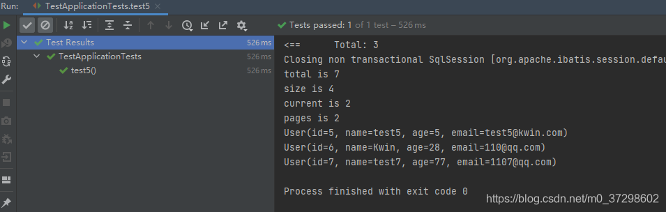 System.out.println("total is " + userPage.getTotal());