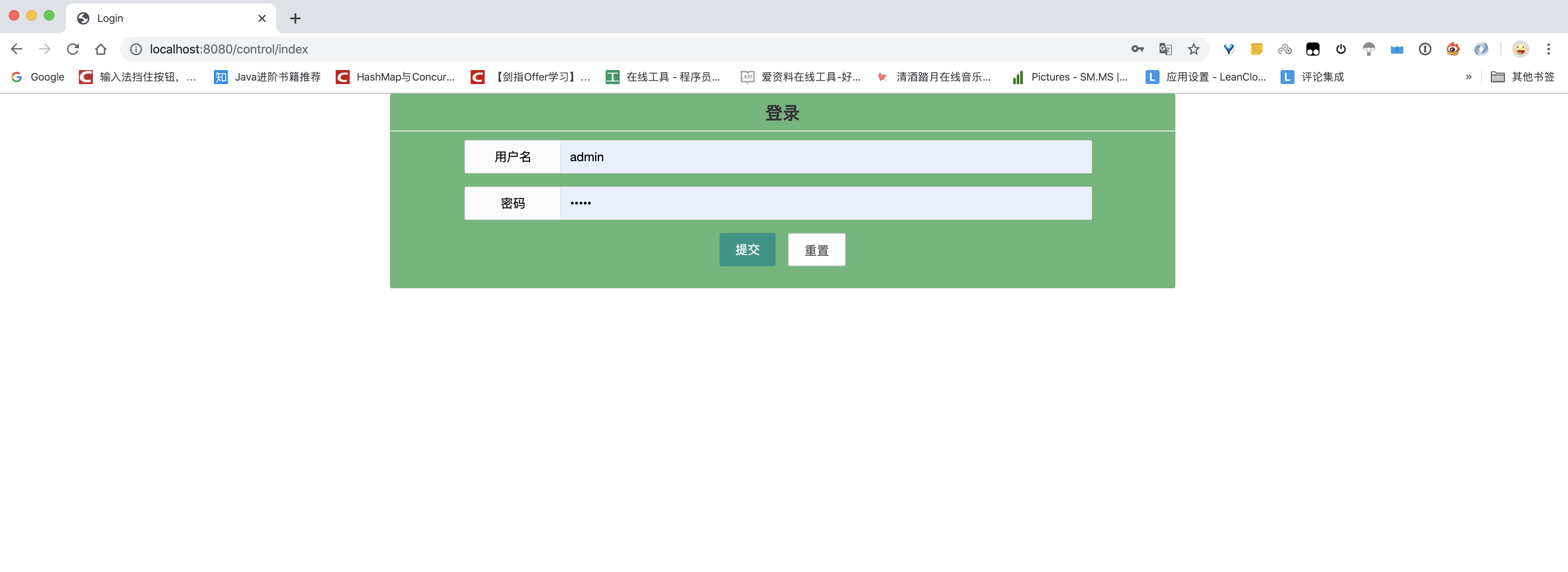 action="/control/login", 然后有两个输入框, 它们的name分别为username,password对应
