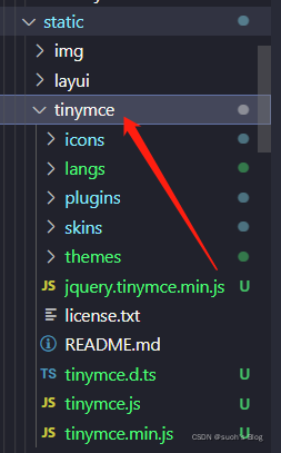 然后进入js文件夹找到tinymce文件夹