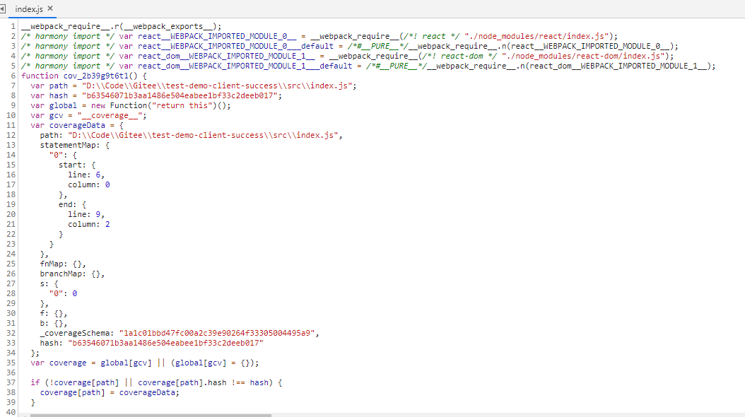 结果是不行的,代码似乎没有问题,没有了import也没有其他的语法问题,但是依然还是过不了react这一关,还是会报错,依然是之前的那些问题,那么这样只有一条路可以走了,是用babel编译后的代码进行插桩,使用插件babel-plugin-istanbul
