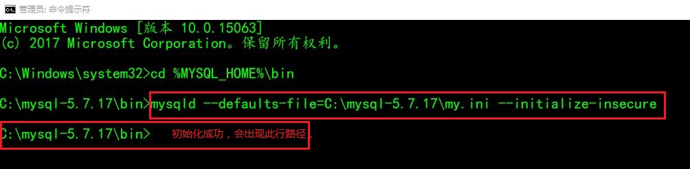 1)、 输入:mysqld --defaults-file=C:\mysql-5.7.17\my.ini --initialize-insecure