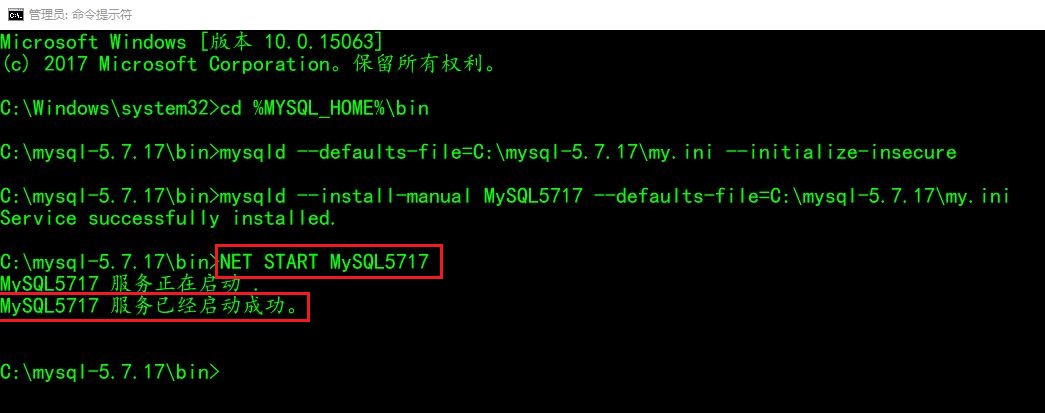 输入:NET START MySQL5717 启动服务: MySQL5717
