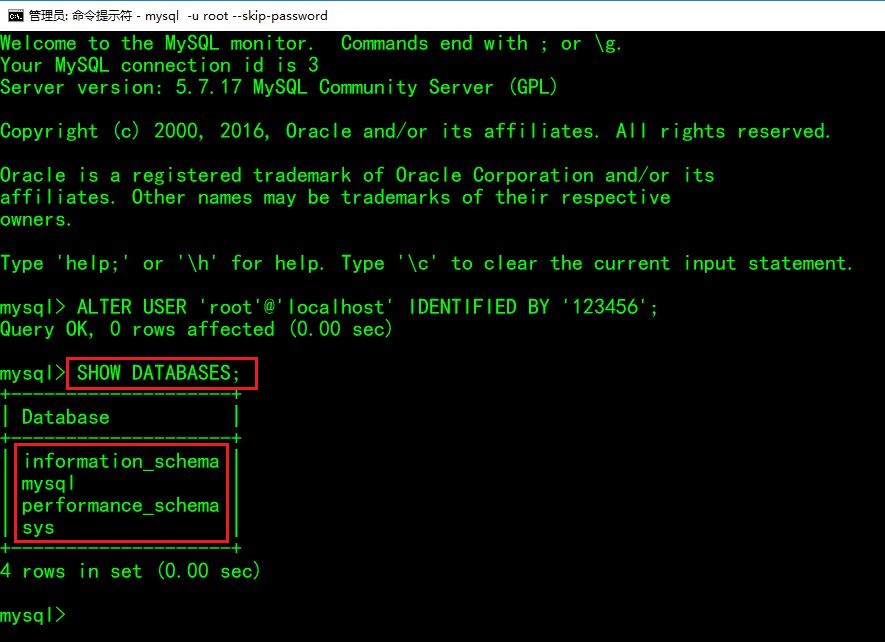 (由于,之前初始化数据库和表空间时,登录密码设置为空,所以现在登录需要--skip-password)