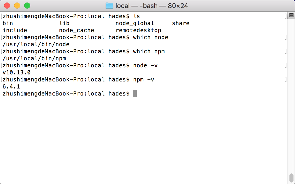 1,下载mac os的pkg安装包(node-v版本号.pkg),一路默认安装即可,安装路径一般为/usr/local/bin/。然后查看node和npm的版本号。