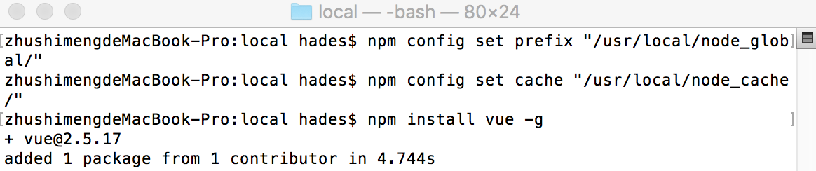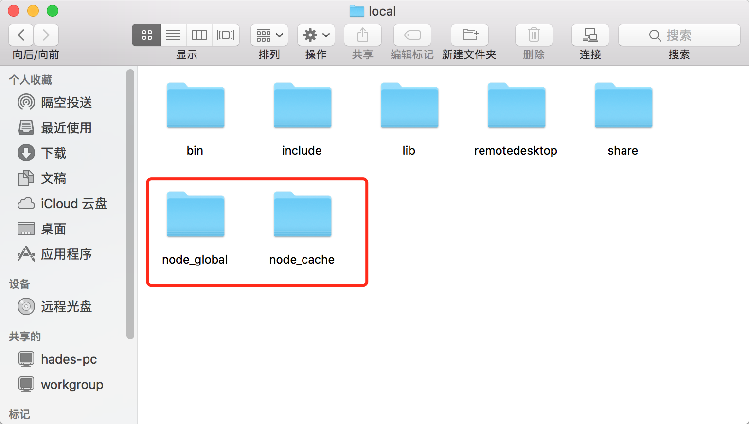 2,可以在终端通过命令创建global和cache的文件夹(进入目录后,mkdir node_global、mkdir node_cache ),